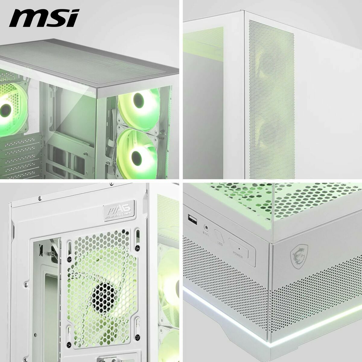 The MSI ATX mid-tower case in white is specially designed for gaming environments that demand a balance between size, functionality, and aesthetics. Its Midi-Tower format provides enough space to install high-performance computer components, including standard ATX motherboards, large graphics cards, and efficient cooling systems. This gaming PC case features advanced connectivity options with USB-A 3.2 ports, enabling fast data transfer and simultaneous connection of modern peripherals without limitations. The mid-tower structure optimizes airflow and allows neat cable management, improving internal thermal flow to maintain controlled temperatures during extended gaming or intensive work sessions. Additionally, its white finish offers a clean, modern look, suitable for setups that prioritize both performance and design. Compatibility with multiple devices and an internal layout designed for easy assembly and maintenance make this case a versatile and solid choice within the mid-size gaming case segment. This MSI option meets the needs of users seeking a functional gaming mid-tower with a refined aesthetic for high-performance systems.